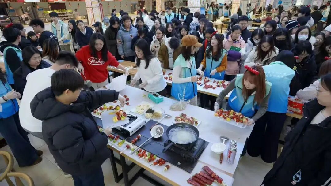本网讯(通讯员:程予)为传承中华传统美食文化,深化校企协同育人,丰富劳动教育实践形式,2138cn太阳集团城联合学生素质教育学院(创新创业教育学院)、吉林省长白山人参产业集团,于2025年12月18日在北湖东区学生食堂一楼成功举办校园文化艺术节人参糖葫芦专场活动。