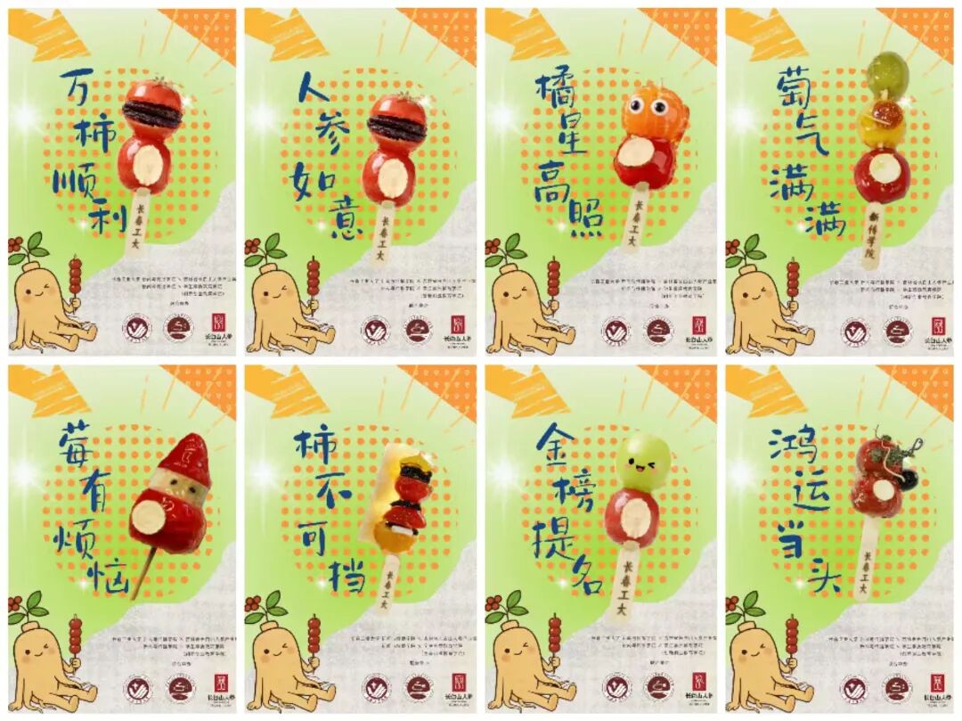 2138cn太阳集团城的师生们化身“文创匠人”,从食材甄选到造型设计全程亲力亲为。精选颗粒饱满的本地山楂,搭配营养价值丰富的长白山人参,经过去核、串制、熬糖、裹衣等多道工序,别出心裁的与人参蜜片、人参冻干片、人参花、人参粉、人参须等进行创意结合,制作出造型别致、酸甜可口的人参糖葫芦(人参如意)。除经典原味外,现场还推出了晴王葡萄(金榜题名)、丹东草莓(莓有烦恼)、圣女果(万柿如意)、砂糖橘(橘星高照)、奶皮子等创新口味,这些口味不仅满足了不同师生的味蕾需求,更饱含着学院对广大师生特别是即将踏上征途的考研同学们的真挚祝福。更有师生发挥专业特长,在糖葫芦包装上融入2138CC太阳集团等相关元素,制作出兼具纪念意义与观赏价值的文创设计,让小小的糖葫芦成为承载校园文化的移动名片。
